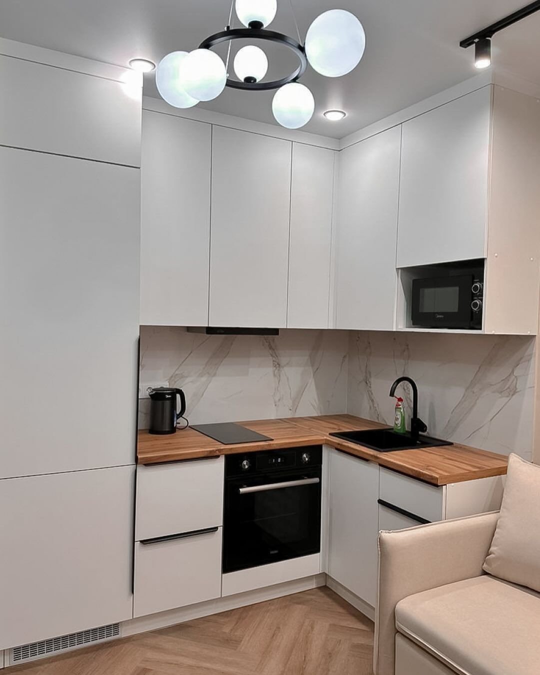 على العكس، يمكن استغلال المساحات الصغيرة بذكاء عبر استخدام خزائن علوية، ألوان فاتحة، وإضاءة جيدة تجعل المكان يبدو أوسع.